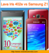 Lava Iris 402e vs Samsung Z1 : Comparison of Features and Specification
