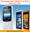Samsung Guru Music 2 vs BLU Win HD LTE : Comparison of Features and Specification