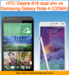 HTC Desire 816 dual sim vs Samsung Galaxy Note 4 (CDMA) : Comparison of Features and Specification