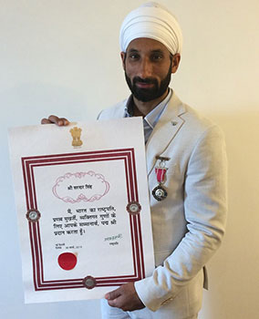 India Men Captain Sardar Singh and former Women Captain Saba Anjum receive the Padma Shri Award