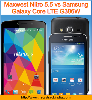 Main Features comparison of the devices Maxwest Nitro 5.5 and Samsung Galaxy Core LTE G386W.
