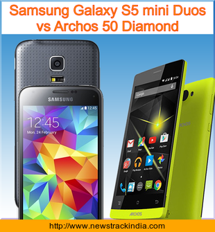 Samsung Galaxy S5 mini Duos is powered with Quad-core 1.4 GHz processor. Whereas Archos 50 Diamond comes with Quad-core 1.5 GHz Cortex-A53 & quad-core 1.0 GHz Cortex-A53 processor.