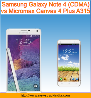 Main Features comparison of the devices Samsung Galaxy Note 4 (CDMA) and Micromax Canvas 4 Plus A315.