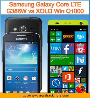 Main Features comparison of the devices Samsung Galaxy Core LTE G386W and XOLO Win Q1000.