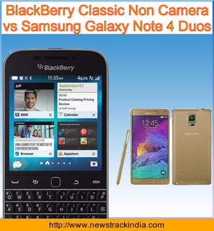 Main Features comparison of the devices BlackBerry Classic Non Camera and Samsung Galaxy Note 4 Duos.