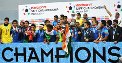 Indian Football team won the South Asian Football Federation (SAFF) Championship for the sixth time Sunday, defeating first time entrant in the final of SAFF Cup Afghanistan by 4-0. India's star performer, Man of the Match and Player of the Tournament Sunil Chhetri, Clifford Miranda, Jeje Lalpekhlua, and substitute Chongtham Sushil Singh scored a goal each for India.