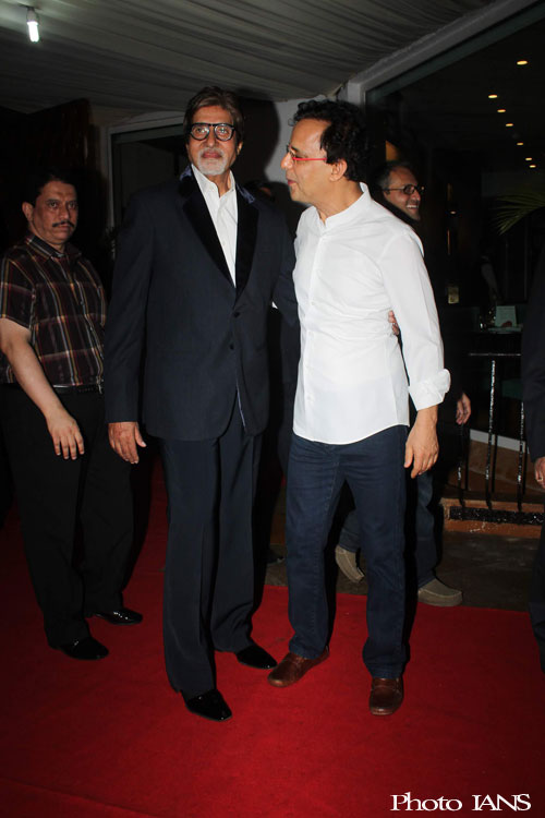 Amitabh Bachchan came to the success party of Ferrari Ki Sawari. He is seen here with director Vidhu Vinod Chopra with whom he did Eklavya.