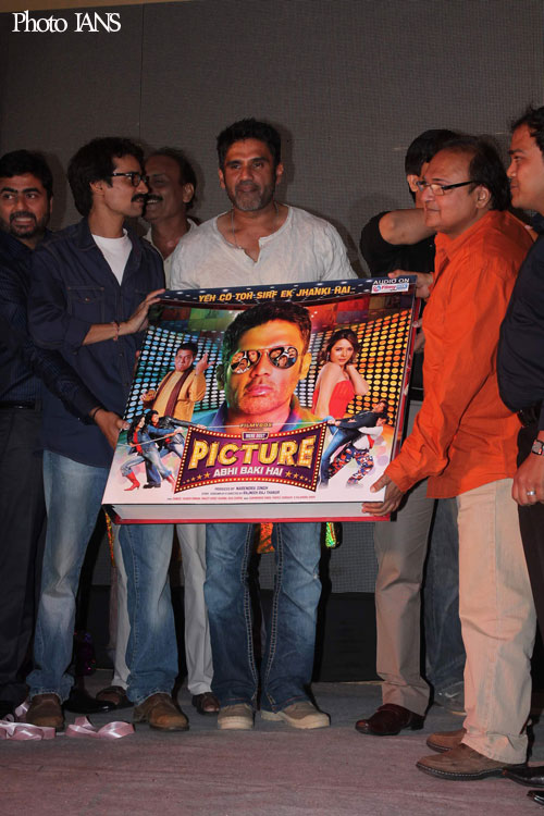 Sunil Shetty came to the music launch of his upcoming Mere Dost Picture Abhi Baaki Hai. Other cast and crew of the film were also present. The launch was held at Novotel, Juhu, Mumbai.