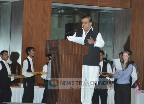 Hockey India Secretary-General Dr. Narinder Batra addressing during the function. Dr. Batra introduced the former legendary hockey players one by one who were honoured by the dignitaries present at the occasion.