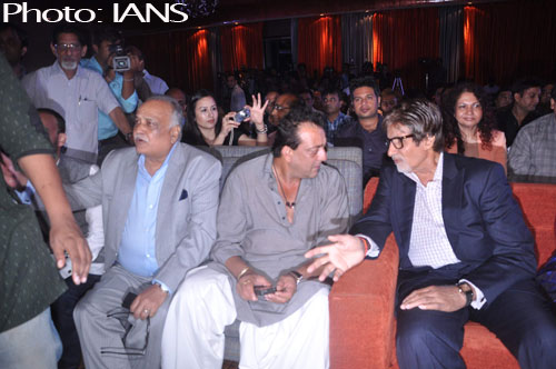 Sanjay Dutt and Amitabh Bachchan were seen having a cheerful conversation with each other at Blockbuster magazine launch in Novotel, Mumbai.