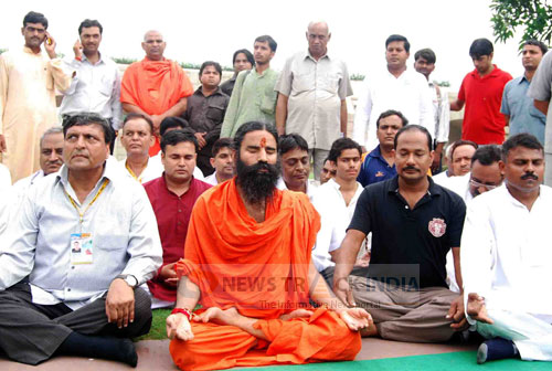 Yoga Guru Ramdev during a meditation with his followers before starting his agitation at Ramlila Ground in New Delhi on Thursday.