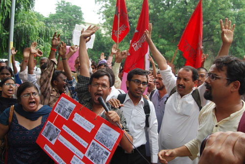 Workers of Maruti Private ltd staged a protest against the management for their various demands in the Capital on Thursday.