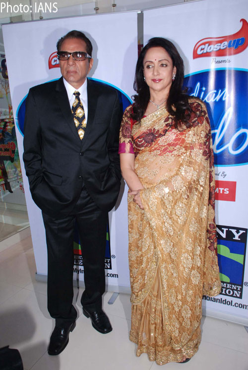 Dharmendra and Hema Malini came as Guest Judges for the singing reality show Indian Idol 6 at Filmcity, Mumbai.