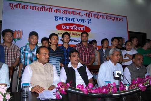 Northeast Delhi Student with BJP national president Nitin Gadkari and other party leaders during a function organized in New Delhi on Monday.