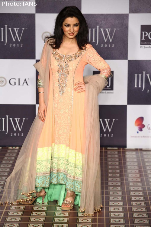 Tisca Chopra walked the ramp for Anmol Jeweller's on Day 2 of India International Jewelry Week 2012 in Mumbai.