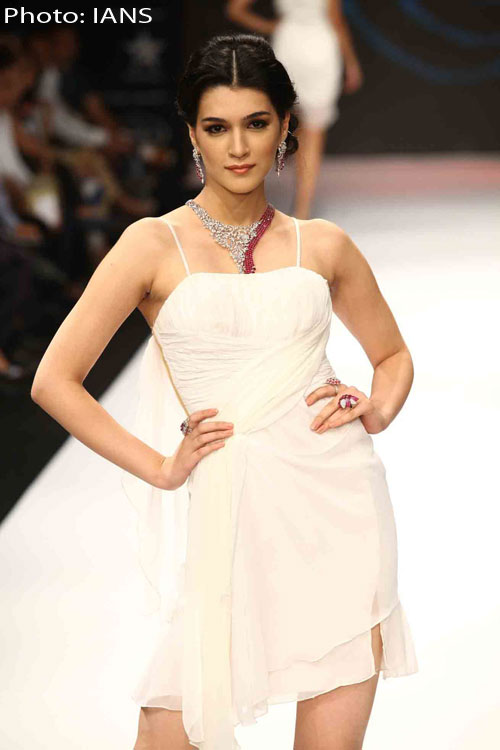 A model walking the ramp for Jewel Trendz (CERES) at the India International Jewellery Week 2012 on day 3.