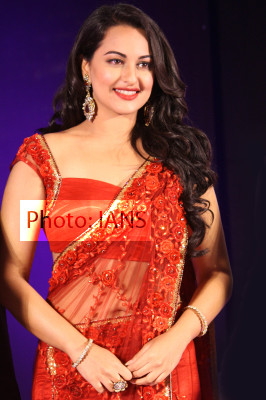 Sonakshi Sinha walked in the bridal dress at the press conference of Aamby Valley India Bridal Fashion Week 2012 held in New Delhi on Tuesday.