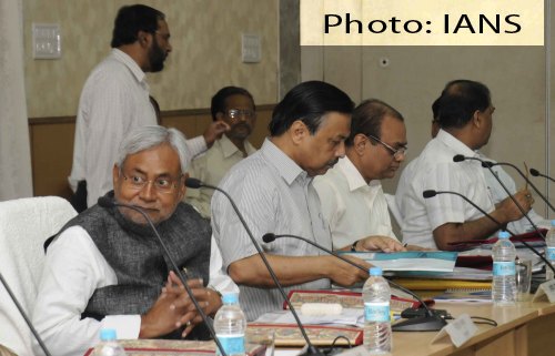 Bihar Chief Minister Nitish Kumar addressed a meeting Human Development Mission Secretariat in Patna.