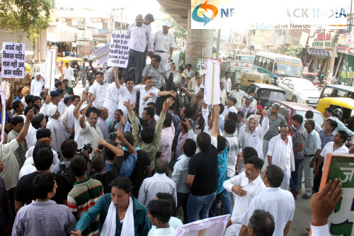 Uttam Nagar Resident along with MCD Corporates Naresh Balyan blocked Najafgarh Road against Local MLA Mukesh Sharma and demanded solution of water and sewerage problem of Uttam Nagar area, in New Delhi on Sunday.