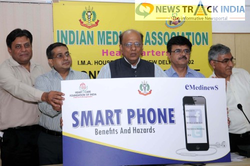 Dr. K.K. Aggarwal, Dr. BC Roy, Dr. Narender Saini, Dr. J. Nagpal released a survey conducted by Heart Care Foundation on "India Regarding Mobile phone Addiction" at IMA House ITO in New Delhi on Wednesday.