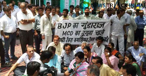 DPCC President and supporters carried out a protest at Ajmeri Gate Chowk against the party tax, commercial tax hike by MCD.