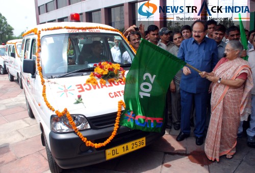 Chief Minister Sheila Dikshit and Dr. Ashok Kumar Walia flag off dedication of new fleet of 50 Cats Ambulance in New Delhi on Friday.