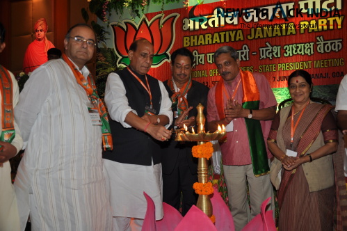 BJP President Rajnath Singh, Senior leaders Arun Jaitely, Sushma Swaraj and other BJP leader attended the BJP National Office Bearers meeting at Hotel Marriott, Miramar, Panaji, Goa on Friday.