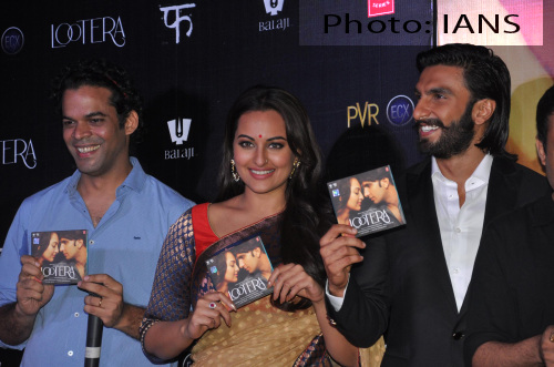 Vikramaditya Motwani, Sonakshi Sinha and Ranveer Singh came to launch the music of their upcoming film Lootera at PVR ECX in Mumbai.