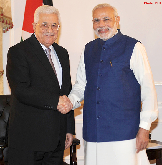 New York on September 28, 2015: The Prime Minister, Shri Narendra Modi meeting the President of Palestine, Mr. Mahmoud Abbas, in New York.