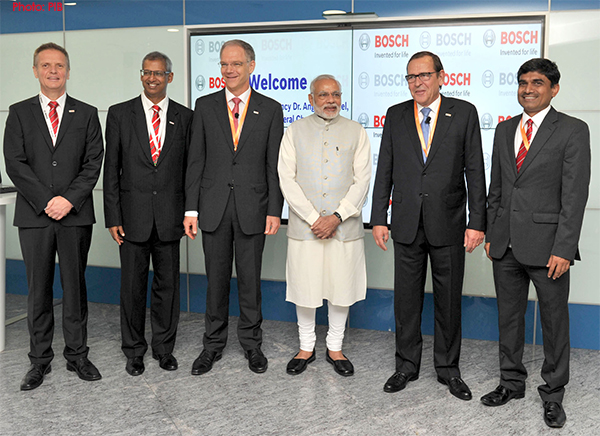 Bengaluru on October 06, 2015: The Prime Minister, Shri Narendra Modi in a group photograph, at the Robert Bosch Engineering & Innovation Centre, in Bengaluru