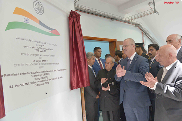 Palestine on October 13, 2015: The President, Shri Pranab Mukherjee inaugurating the India Palestine Centre for Excellence in ICT, at Al-Quds University, Abu Dees, in Palestine.