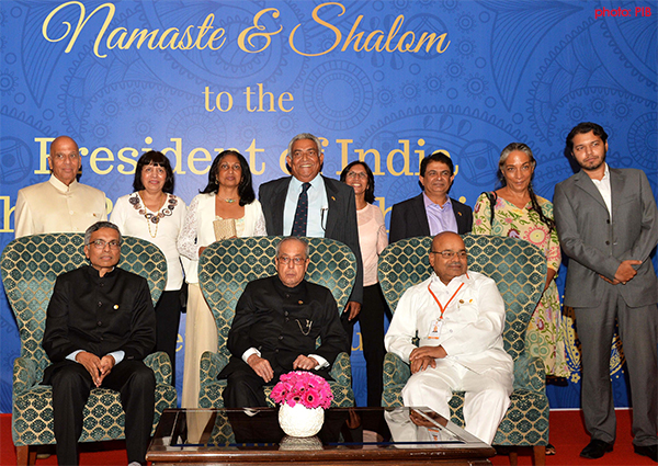Israel on October 13, 2015: The President, Shri Pranab Mukherjee with a group of members of the Israel for Indian nationals and Israeli nationals of Indian origin, during the reception hosted by the Ambassador of India to Israel, Shri Jaideep Sarkar, in Jerusalem, Israel. The Union Minister for Social Justice and Empowerment, Shri Thaawar Chand Gehlot is also seen.