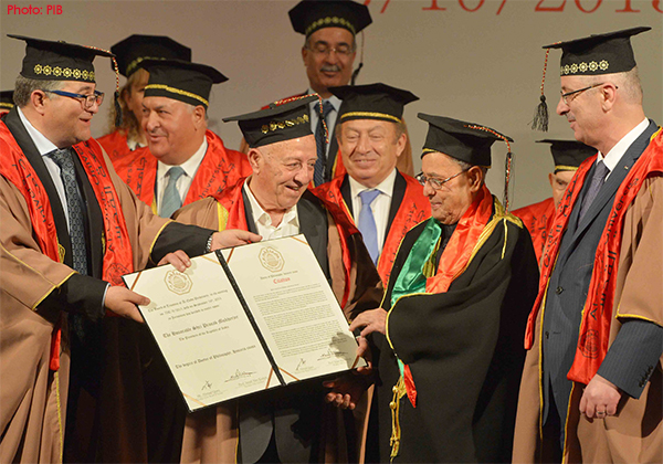 Palestine on October 13, 2015: The Al-Quds University conferred Honorary Doctorate on the President, Shri Pranab Mukherjee by the Prime Minister of Palestine, Mr. Rami Hamdallah, at Ramallah, in Palestine.
