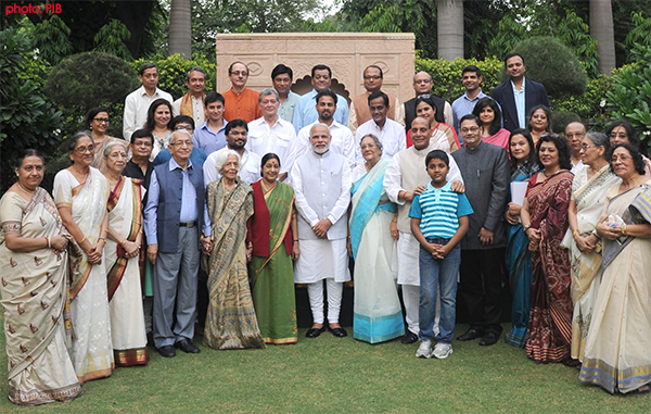 New Delhi on October 14, 2015: The Prime Minister, Shri Narendra Modi in a group photograph with the family members of Netaji Subhas Chandra Bose, at 7 Race Course Road, in New Delhi.