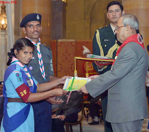 New Delhi on December 08, 2015: The President, Shri Pranab Mukherjee presented the Bharat Scouts & Guides Awards Certificates for the year 2014, at the presentation of the Rashtrapati Scouts & Guides Awards for the year-2014, at Rashtrapati Bhavan, in New Delhi.