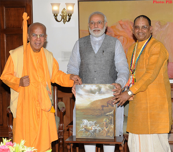 New Delhi on March 18, 2016: The Head, ISKCON, Shri Gopal Krishna Goswami Maharaja calls on the Prime Minister, Shri Narendra Modi, in New Delhi.