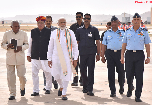 Rajasthan on March 18, 2016: The Prime Minister, Shri Narendra Modi at Jaisalmer Air base, in Rajasthan.