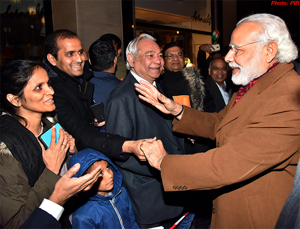 Belgium on March 30, 2016: The Prime Minister, Shri Narendra Modi being warmly welcomed by the people of Indian Community, on his arrival at Brussels, Belgium.