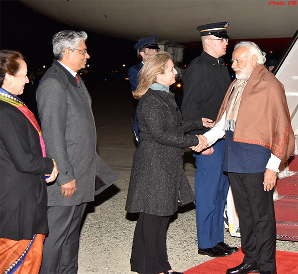 Washington on March 31, 2016: The Prime Minister, Shri Narendra Modi being received on his arrival at Washington DC on March 31, 2016.