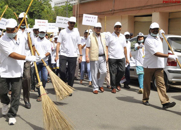 June 16 2016 The Union Minister for Rural Development Panchayati Raj, Drinking Water and Sanitation, Shri Chaudhary Birender Singh launching the cleanliness drive in his Ministry under Swachh Bharat Abhiyan, in New Delhi The Secretary Ministry of Drinking Water and Sanitation Shri Parameswaran Iyer is also seen.