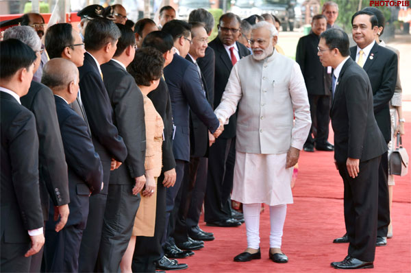 June 17, 2016 The Prime Minister of the Kingdom of Thailand, General Prayut Chan-o-cha introducing the Prime Minister, Shri Narendra Modi to the Thai delegates, at the ceremonial reception, at Rashtrapati Bhavan, in New Delhi on June.