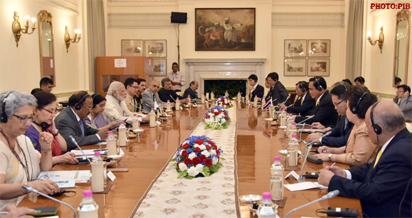 New Delhi on June 17, 2016 The Prime Minister, Shri Narendra Modi and the Prime Minister of the Kingdom of Thailand, General Prayut Chan-o-cha at the delegation level talks, at Hyderabad House, in New Delhi.