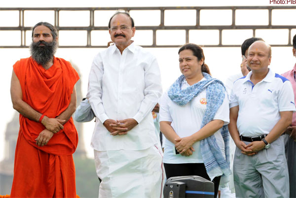 New Delhi on June 19, 2016 The Yoga Guru, Baba Ramdev and the Union Minister for Urban Development, Housing and Urban Poverty Alleviation and Parliamentary Affairs, Shri M. Venkaiah Naidu at a yoga camp ahead of the International Day of Yoga - 2016, at Rajpath.