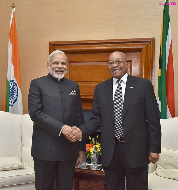 South Africa on July 08, 2016: The Prime Minister, Shri Narendra Modi in a tete-a-tete with the President of the Republic of South Africa, Mr. Jacob Zuma, at Union Buildings, in Pretoria, South Africa.