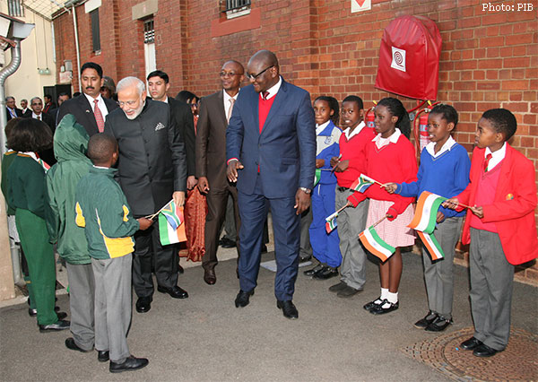 South Africa on July 08, 2016: The Prime Minister, Shri Narendra Modi interacting with the kids at Constitution Hill, in Johannesburg, South Africa.