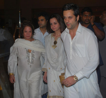 Fardeen Khan with sister Laila Khan and Sundari at his father?s Prayer Meet.