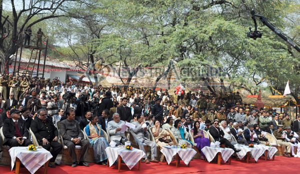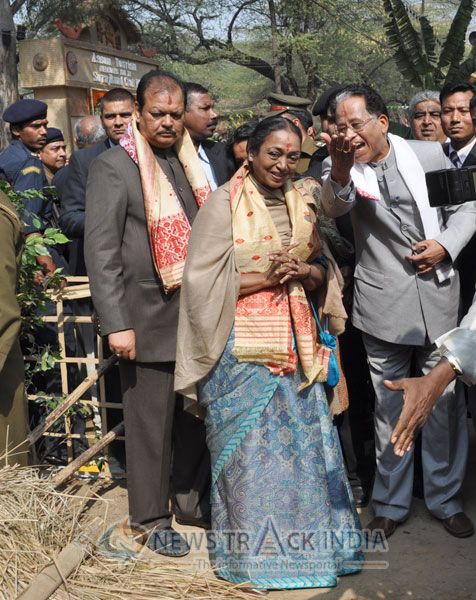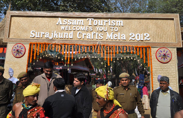 The 26th Surajkund Carft fair kicked on its sceduled date from 01st February 2012 to 15th February 2012 at Surajkund, Faridabad, 8 km from South Delhi. The ceremony commence with the inaguration ceremony and lighening the lamps. Lok Sabha Speaker Meira Kumar, inagurated the ceremony and visit to different stalls. She along with Union Tourism Subodh Kant Sahay, Bhupinder Kumar Hooda, Chief Minister of Haryana, Tarun Gogoi, Chief Minister of Assam, Dolly Gogoi, wife of Tarun Gogoi were honored by the organizers and stall owners whereever they visted in the stalls. Finally they reaached to Panchayat, where an open air theatre were set up for delivering their speeches and for artisits performance. We have few snapsots of the entire activies. Some of them are arranged in this image gallery. Click on to view enlarged image.