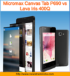 Micromax Canvas Tab P690 vs Lava Iris 400Q : Comparison of Features and Specification
