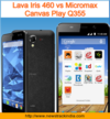 Lava Iris 460 vs Micromax Canvas Play Q355 : Comparison of Features and Specification
