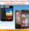 Samsung Galaxy W vs Microsoft Lumia 640 LTE Dual SIM : Comparison of Features and Specification